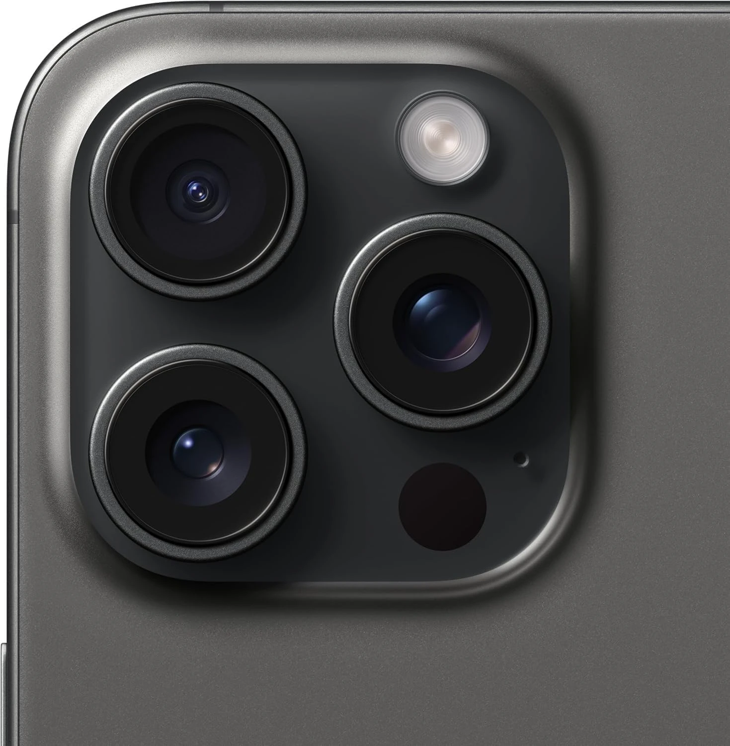 شاشة Super Retina XDR مقاس 12.5 بوصة مع ProMotion بتردد يصل إلى 120 هرتز وخاصية Always-On، بتصميم من التيتانيوم مع غطاء خلفي من الزجاج غير اللامع المزخرف، وزر الحركة، وDynamic Island.