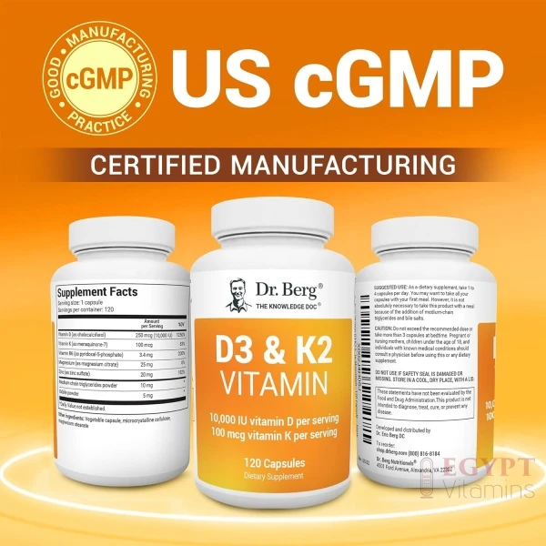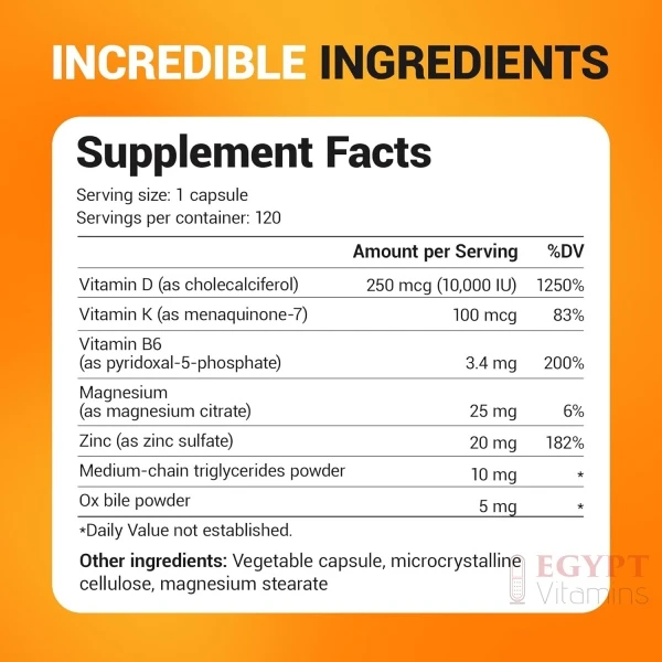 غذائي طبيعي متطور يجمع بين فيتامين D3 (10,000 وحدة دولية) وفيتامين K2