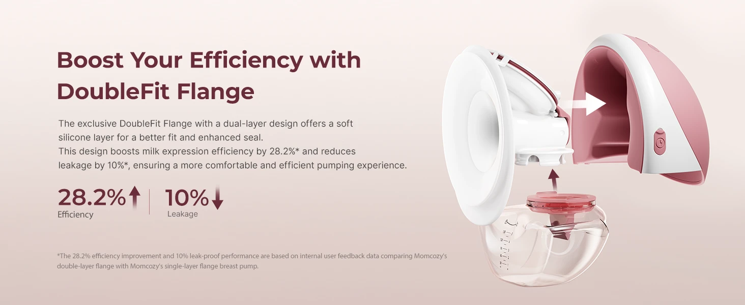تصميم ملائم وسري: مضخة Mobile Flow تستخدم فلكنج مزدوج من السيليكون الناعم والصلب لضمان راحة وأمان أفضل. التصميم المنحني يناسب حمالة الصدر، يسمح بالضخ بسرية تامة.