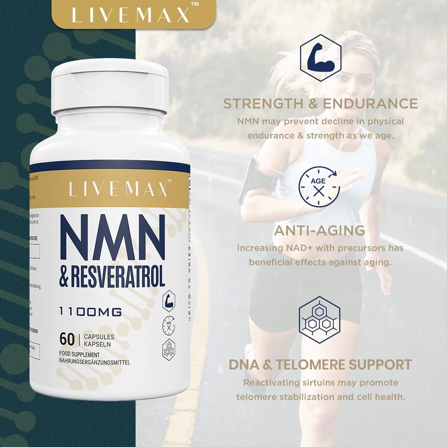 يعزز مستويات NAD+ لحيوية الخلايا.