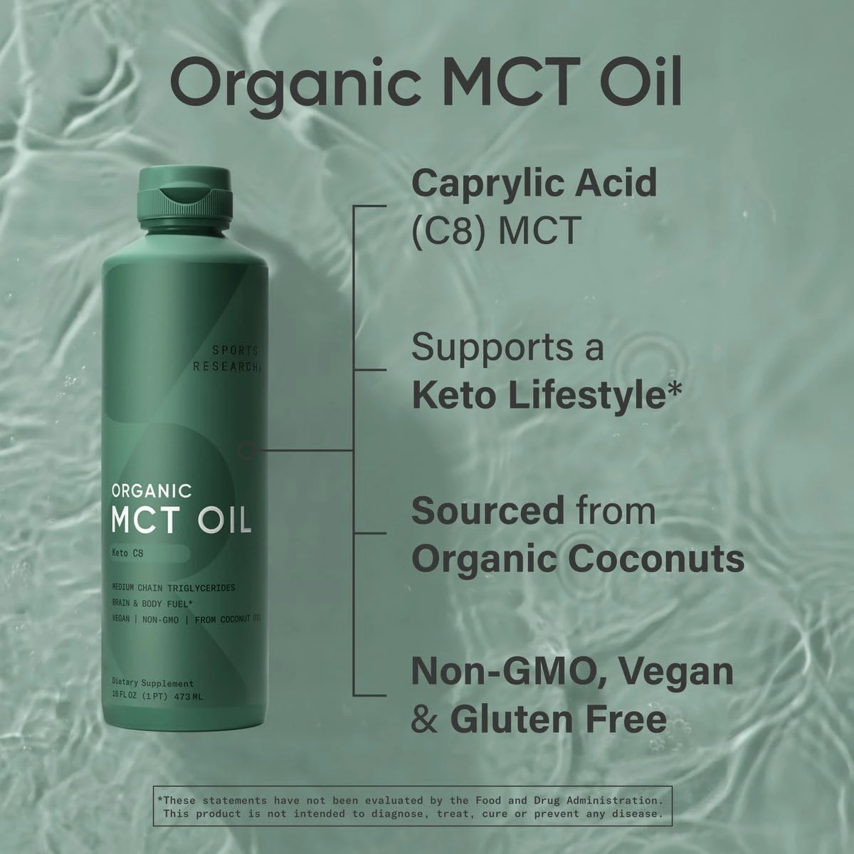 زيت MCT العضوي C8 | وقود نقي للدماغ | سبورتس ريسيرش - 473 مل