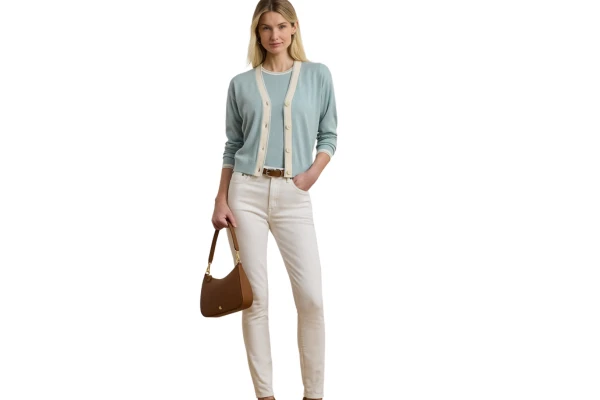 With a two-tone design, signature pearlized buttons, and an