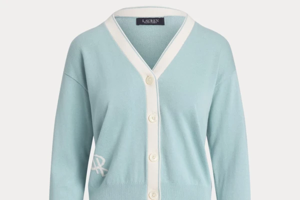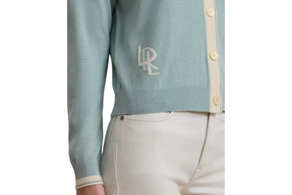 intarsia-knit "LRL" logo at the waist, this V-neck cardigan is an iconic